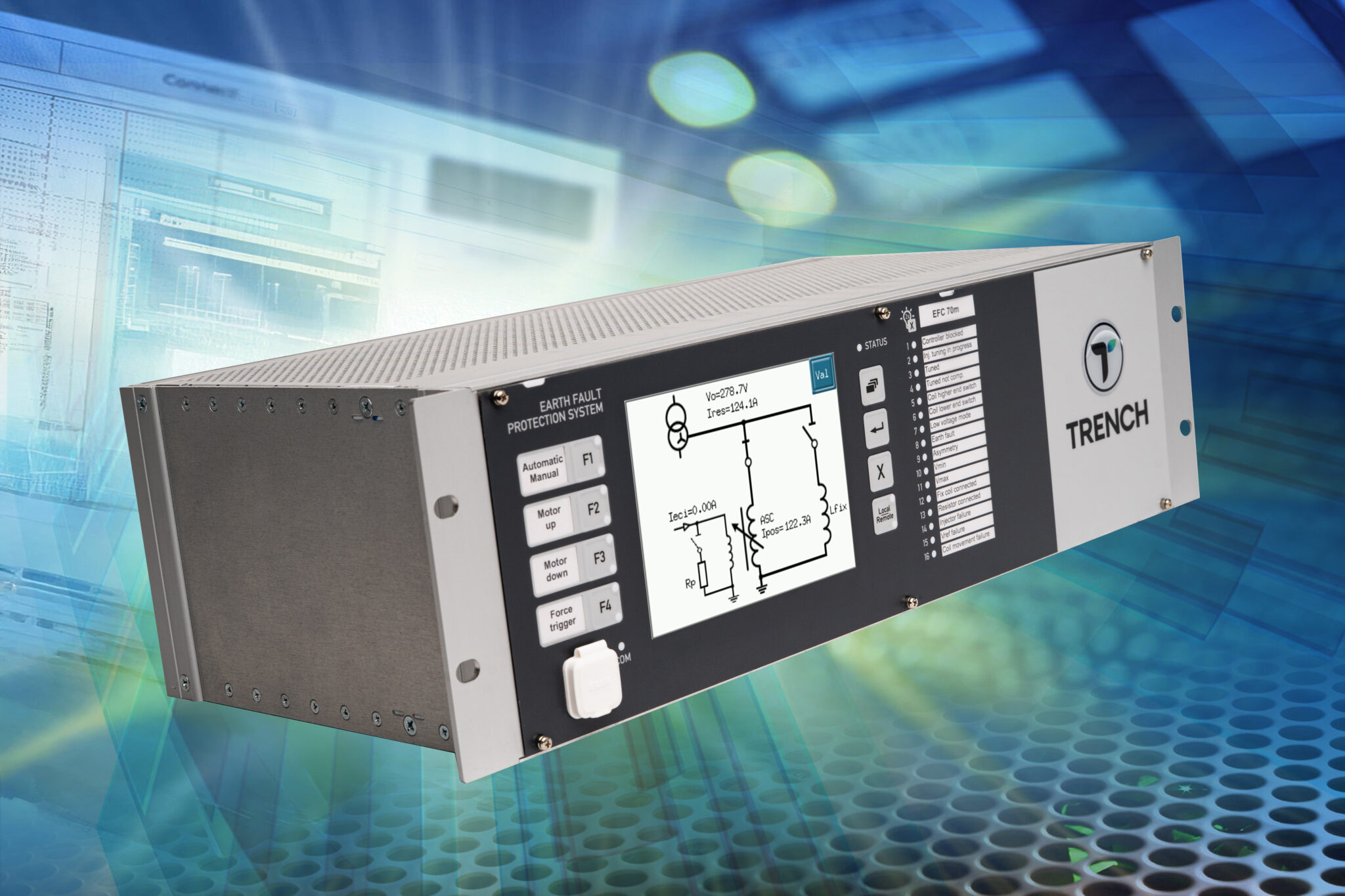 Trench's EFC 70s offers all the proven and established algorithms for tuning arc suppression coils to network conditions. Combining this with a modern versatile hardware platform and an easy to use operating concept.
